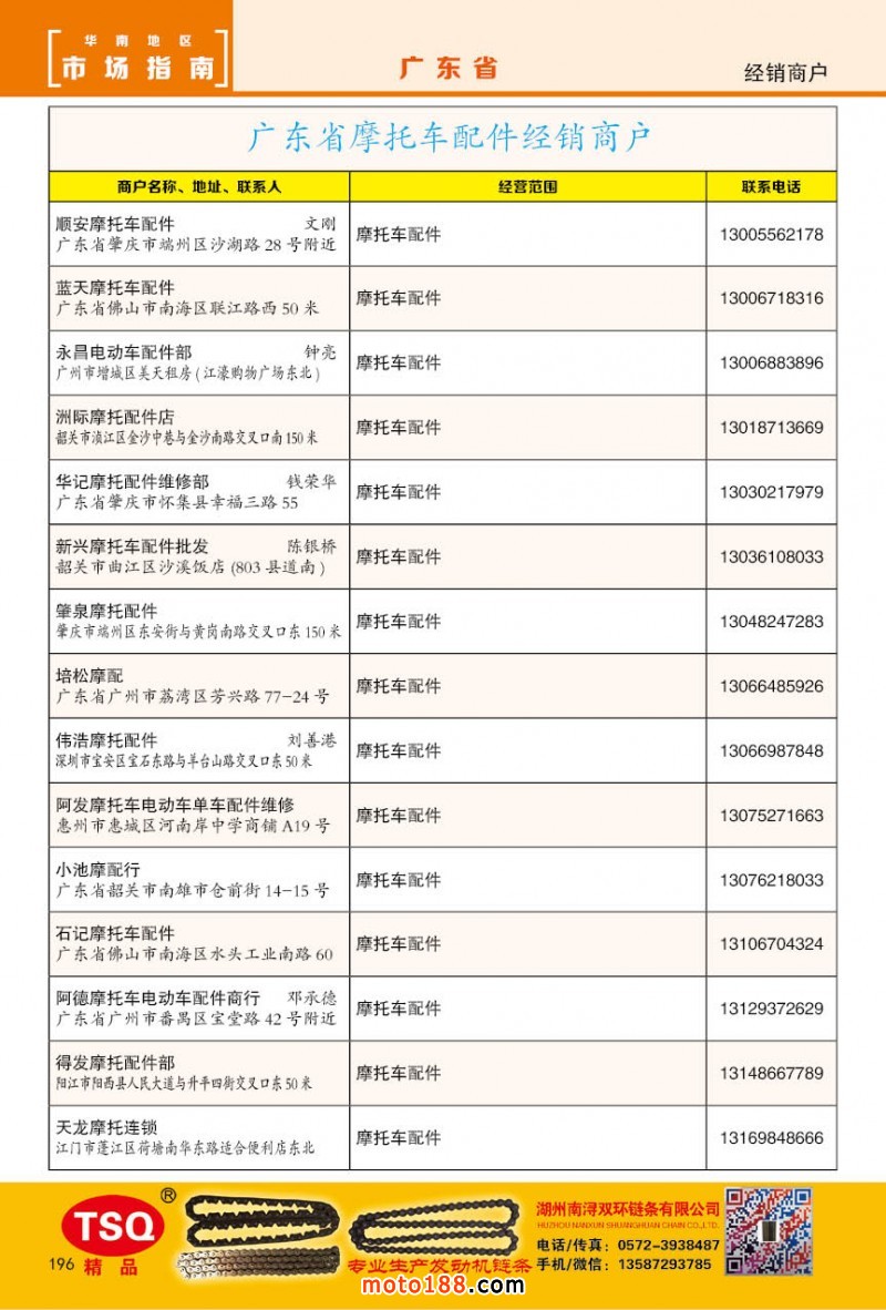 內(nèi)196 廣州市摩托車配件經(jīng)銷商戶