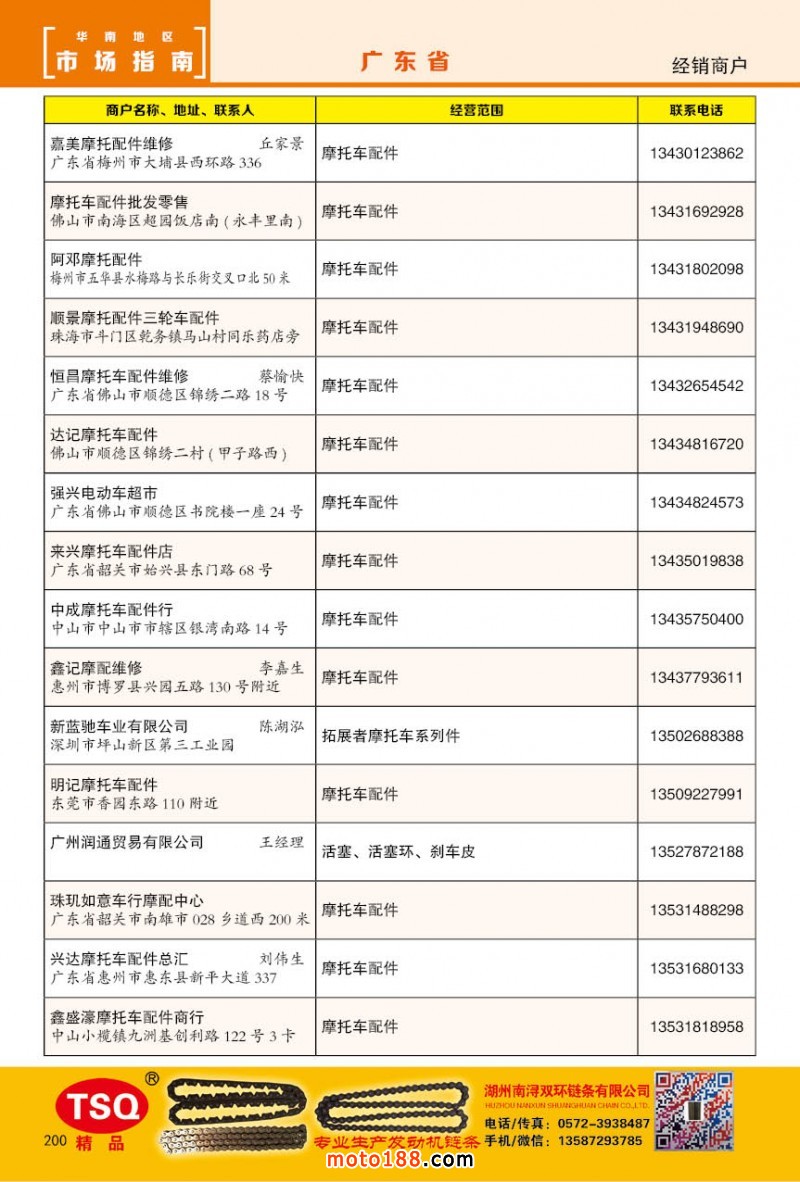 內(nèi)200 廣州市摩托車配件經(jīng)銷商戶