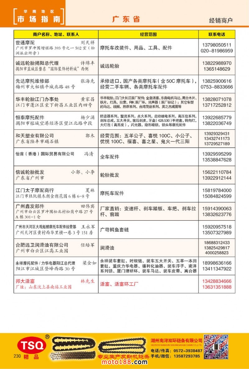 內230 廣州市摩托車配件經銷商戶