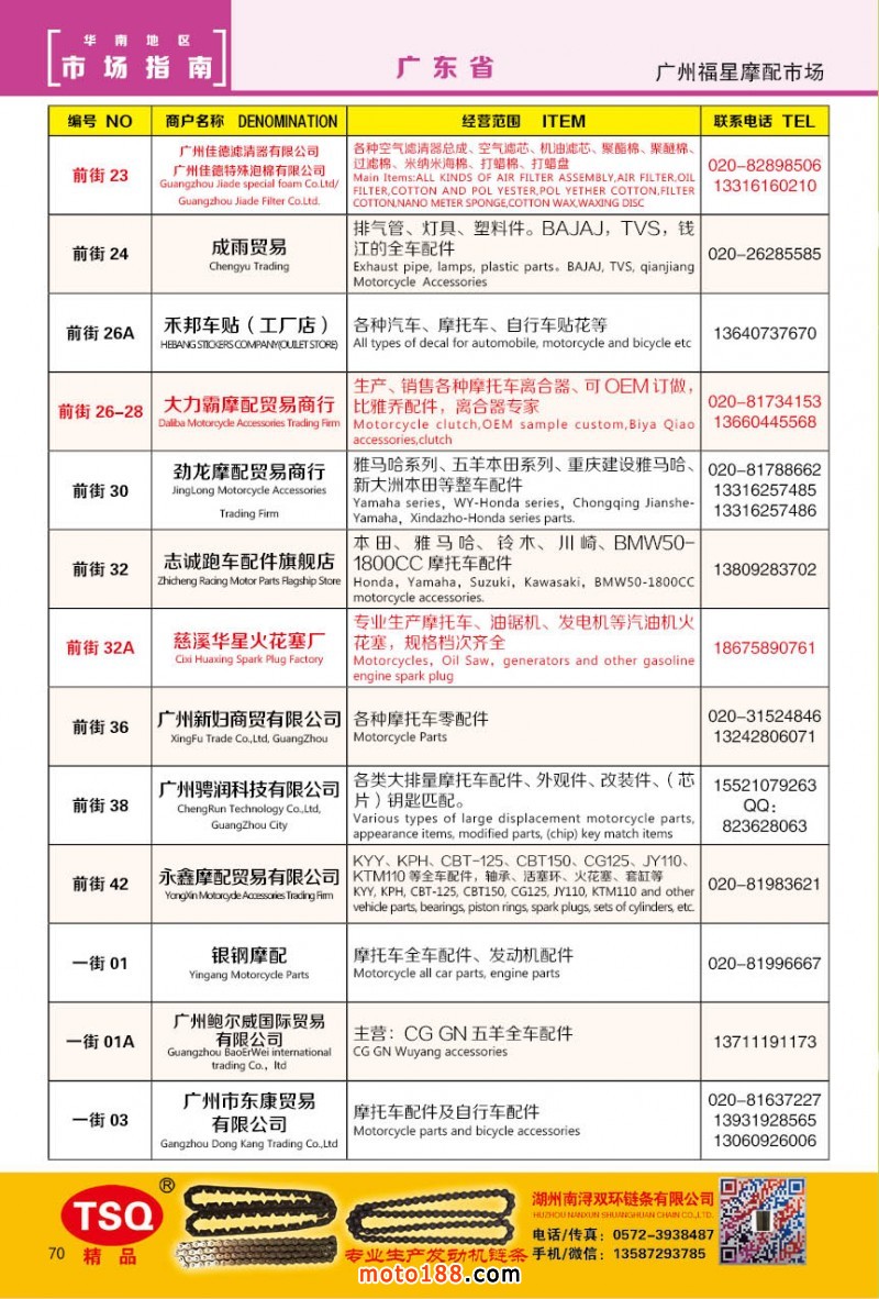 最新升級的《摩配華南市場指南》升級版在第76屆廣州全國摩托車及配件展示交易會上首發(fā),歡迎朋友們來3109號展位。接著將在廣州、重慶摩配市場全面派送,在廣州福星、松南市場門口、及白云三個檔口常年設(shè)立發(fā)行窗口;發(fā)行至廣州、重慶、江浙的幾大板塊主要廠家及全國的主要摩配市場。