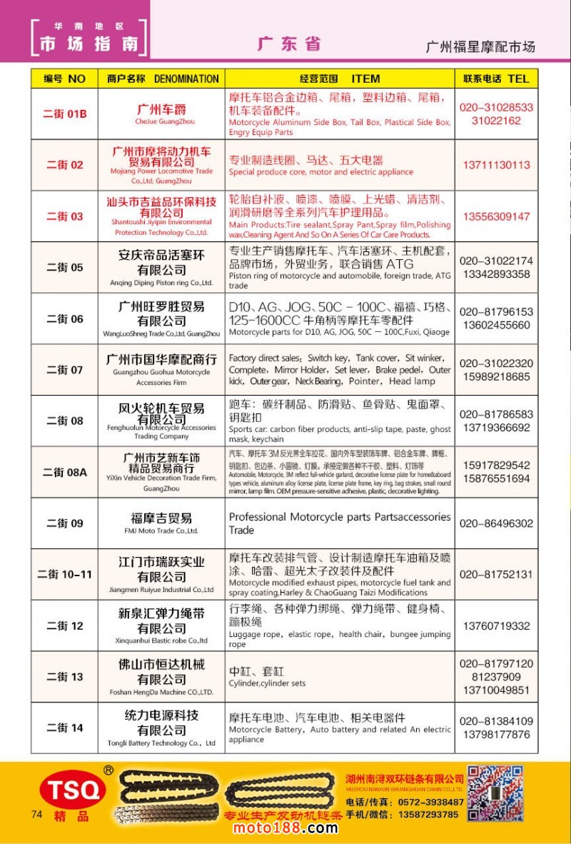 最新升級的《摩配華南市場指南》升級版在第76屆廣州全國摩托車及配件展示交易會上首發,歡迎朋友們來3109號展位。接著將在廣州、重慶摩配市場全面派送,在廣州福星、松南市場門口、及白云三個檔口常年設立發行窗口;發行至廣州、重慶、江浙的幾大板塊主要廠家及全國的主要摩配市場。