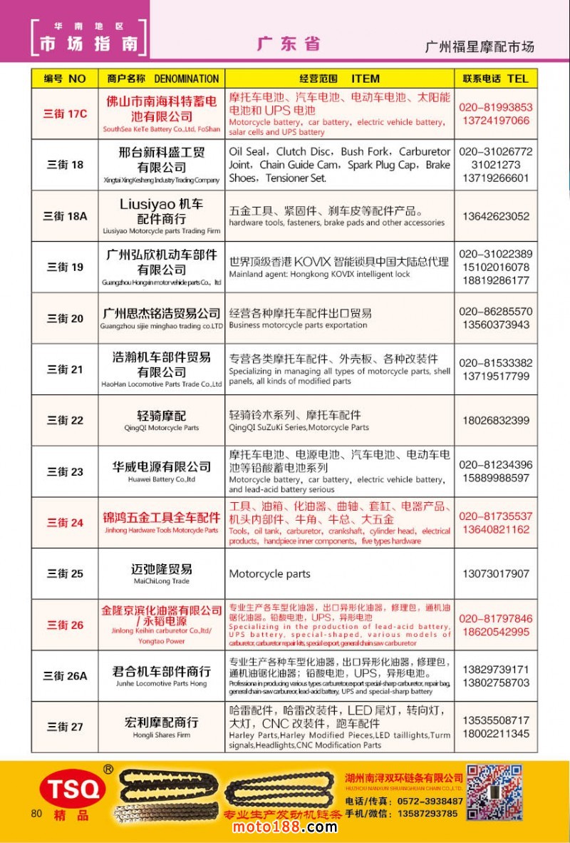 最新升級的《摩配華南市場指南》升級版在第76屆廣州全國摩托車及配件展示交易會上首發(fā),歡迎朋友們來3109號展位。接著將在廣州、重慶摩配市場全面派送,在廣州福星、松南市場門口、及白云三個檔口常年設(shè)立發(fā)行窗口;發(fā)行至廣州、重慶、江浙的幾大板塊主要廠家及全國的主要摩配市場。