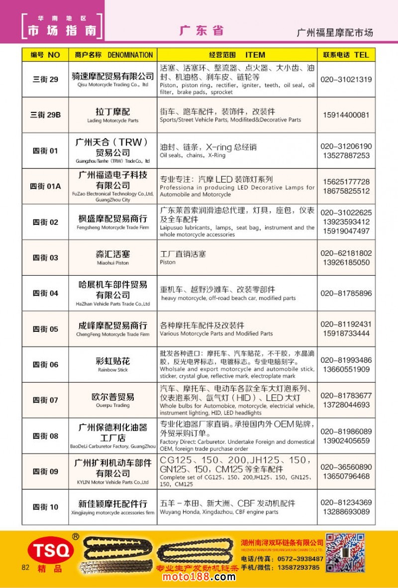 最新升級的《摩配華南市場指南》升級版在第76屆廣州全國摩托車及配件展示交易會上首發,歡迎朋友們來3109號展位。接著將在廣州、重慶摩配市場全面派送,在廣州福星、松南市場門口、及白云三個檔口常年設立發行窗口;發行至廣州、重慶、江浙的幾大板塊主要廠家及全國的主要摩配市場。