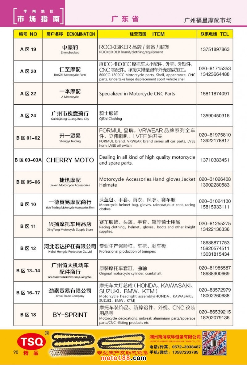 最新升級(jí)的《摩配華南市場(chǎng)指南》升級(jí)版在第76屆廣州全國(guó)摩托車及配件展示交易會(huì)上首發(fā),歡迎朋友們來(lái)3109號(hào)展位。接著將在廣州、重慶摩配市場(chǎng)全面派送,在廣州福星、松南市場(chǎng)門口、及白云三個(gè)檔口常年設(shè)立發(fā)行窗口;發(fā)行至廣州、重慶、江浙的幾大板塊主要廠家及全國(guó)的主要摩配市場(chǎng)。