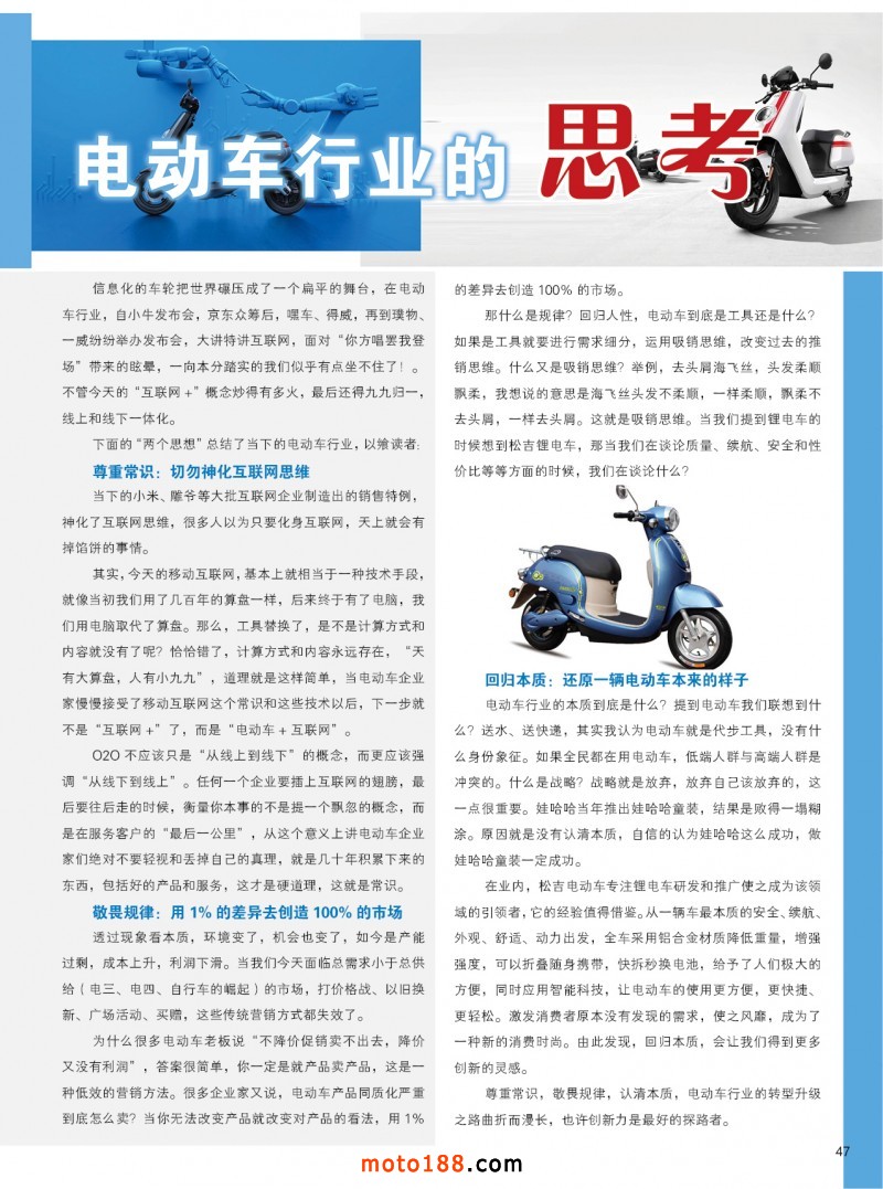 綜上所述,2019年我們將進(jìn)行兩項(xiàng)重大變革:以定位摩托車配件內(nèi)容為主體的《摩托車與配件》,將變更成電動(dòng)摩托與配件為主體《電摩與配件》;傳統(tǒng)紙媒為主的雜志,將變更為以互聯(lián)網(wǎng)+紙媒雜志,并以互聯(lián)網(wǎng)+新媒體為主。具體的舉措為: