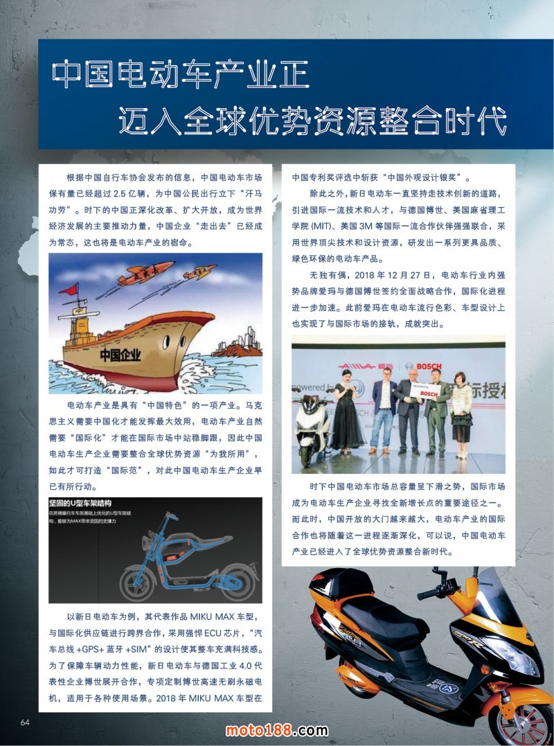 在這個春天里我們感受到和風拂面,我們更堅定了信心,我們傳統媒體務實的發展和經營,基礎工作在不斷的加厚夯實,今年我們雜志進行了大調整,一年只在銷售季里出刊,全年出刊四期精品,本期雜志就有許多重要信息發布:政策面上的行業和地方上的重要政策(如前所述),18年的市場數據匯總分析,通機產品技術介紹 ,行業有關的重要國際資訊,國際巨頭研發生產的情況動態,電摩行業電動三四輪及動力電池最新的國家和地方政策,從海量的信息里精挑細選,每一遍文章都能讓讀者開卷有限,同時還值得收藏。