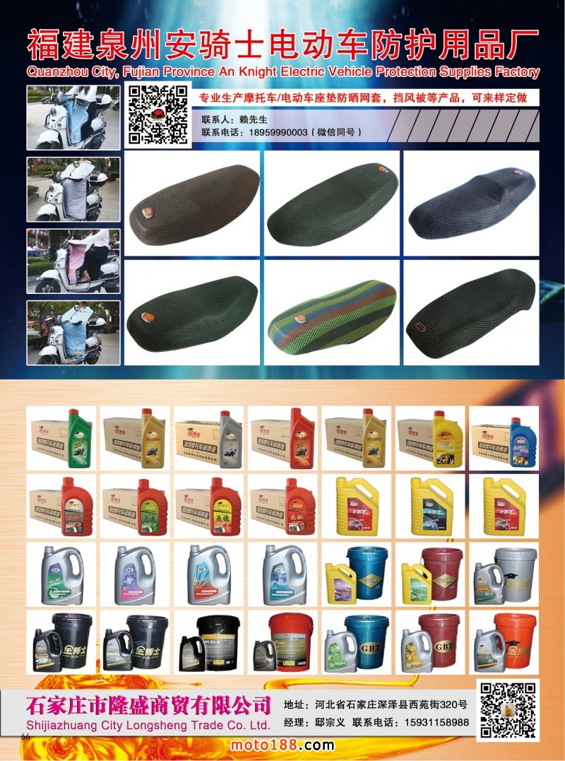 2019.5月《摩托車/電動車與配件》雜志,歡迎大家閱讀日期:2019-05-08 點擊:1860 查看原圖 全部展開![]() ![]() ![]() 內66 福建泉州安騎士電動車防護用品廠