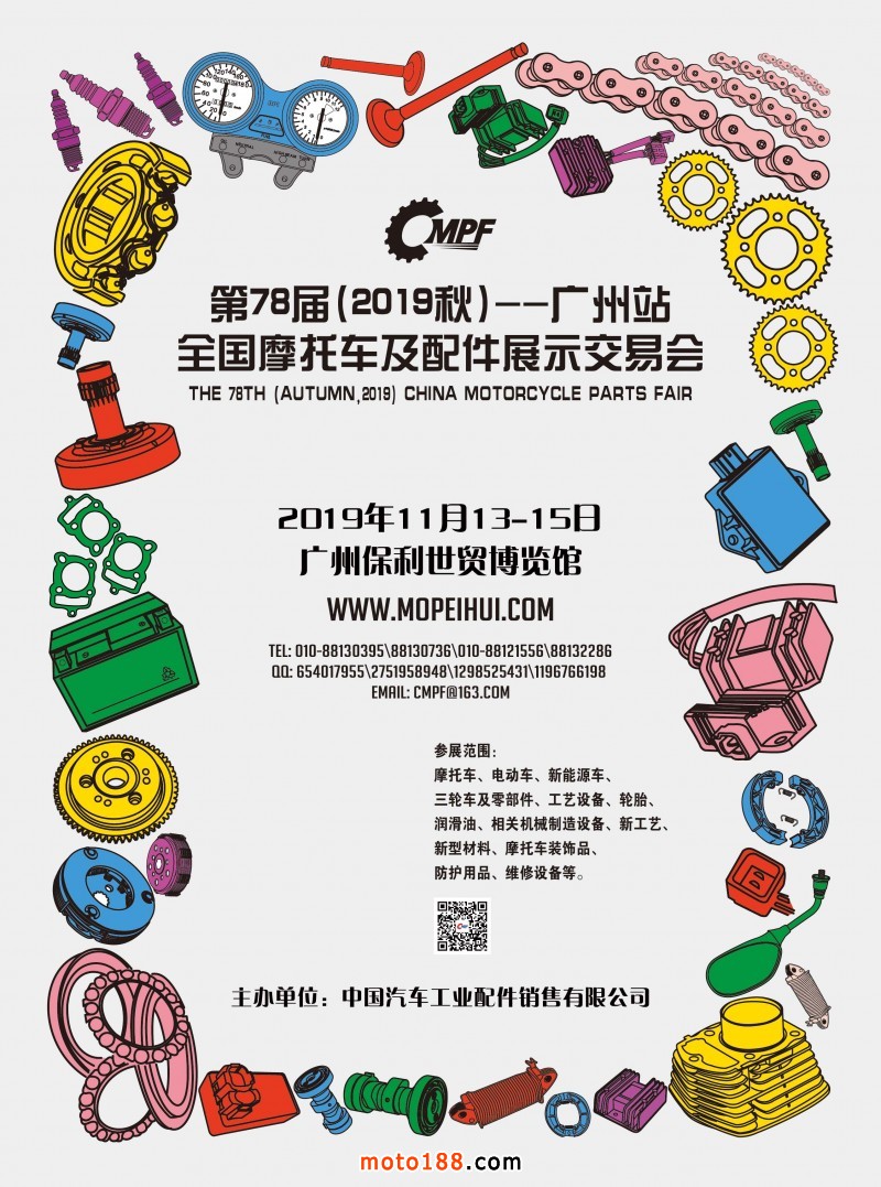 2019.5月《摩托車/電動車與配件》雜志,歡迎大家閱讀日期:2019-05-08 點擊:1860 查看原圖 全部展開![]() ![]() ![]() 封三 第78屆(2019年秋)—廣州站 全國摩托車及配件展示交易會