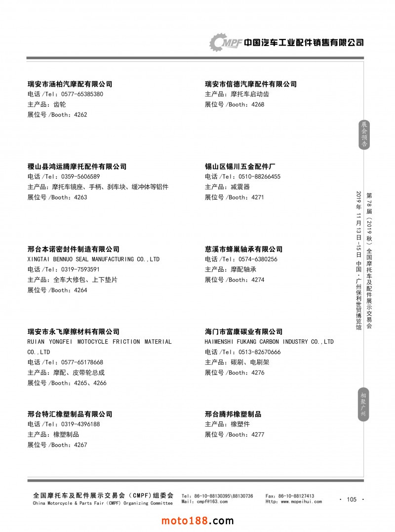 內(nèi)105 第77屆(2019春)全國摩托車及配件展示交易會-青島站參展企業(yè)信息