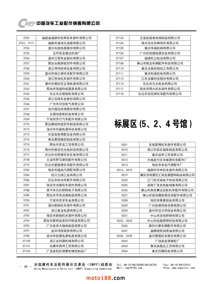 內40 第77屆(2019春)全國摩托車及配件展示交易會-青島站參展單位名錄