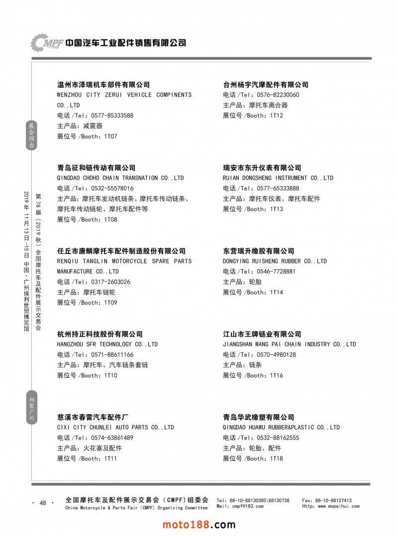 內48 第77屆(2019春)全國摩托車及配件展示交易會-青島站參展企業信息