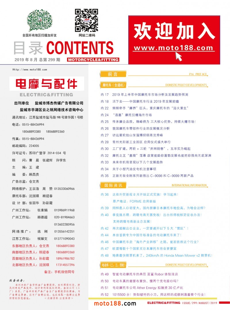 2019.8月《摩托車/電動車與配件》雜志,歡迎大家閱讀