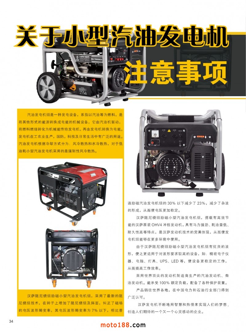 內34 關于小型汽油發電機注意事項