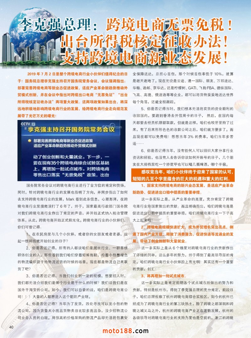 內40 李克強總理:跨境電商無票免稅!出臺所得稅核定征收辦法!