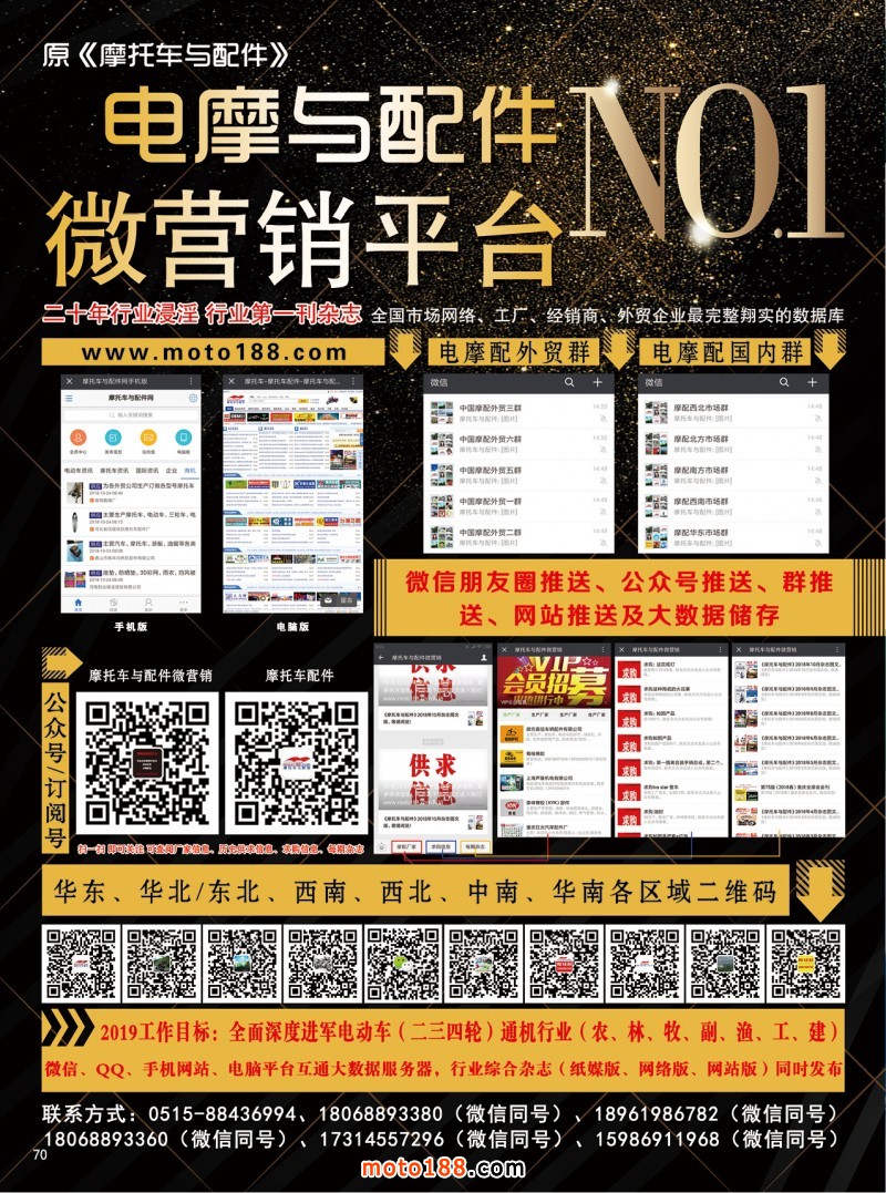 三年來由于我們的憂患意識,提早布局而打下了深厚的基礎:行業絕無僅有的史詩般的巨型數據庫《電動車大數據》,摩托車行業向電動車行業延伸的原《摩托車與配件》后更名為 《電摩與配件》雜志,使我們向這些行業進軍如虎添翼,工作事半功倍,在摩配行業一騎絕塵,在電動車行業也被更多的企業所認可。