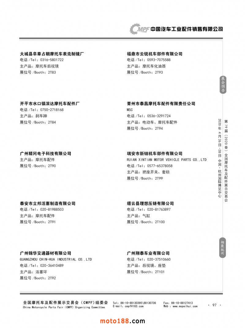 內(nèi)79-172 第78屆(2019秋)全國摩托車及配件展示交易會-廣州站參展企業(yè)信息