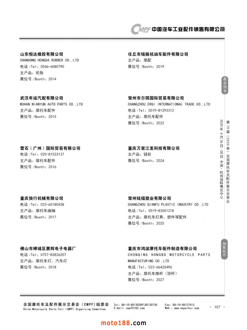 內79-172 第78屆(2019秋)全國摩托車及配件展示交易會-廣州站參展企業信息