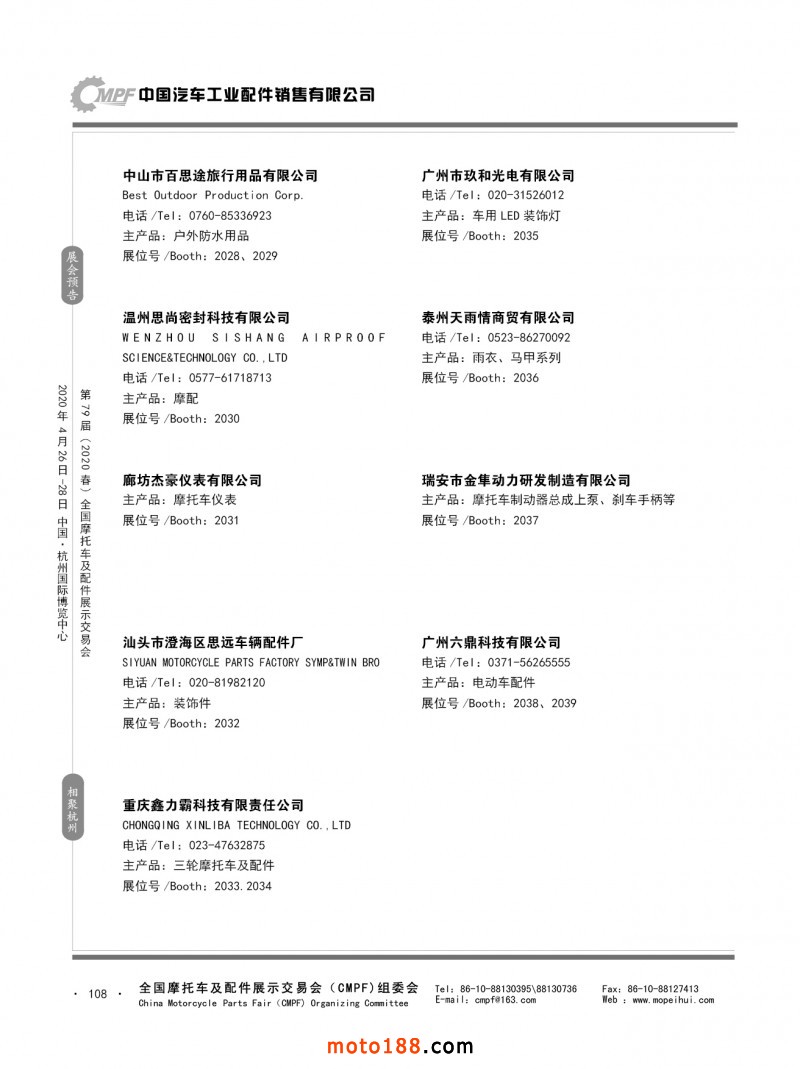 內(nèi)79-172 第78屆(2019秋)全國摩托車及配件展示交易會-廣州站參展企業(yè)信息