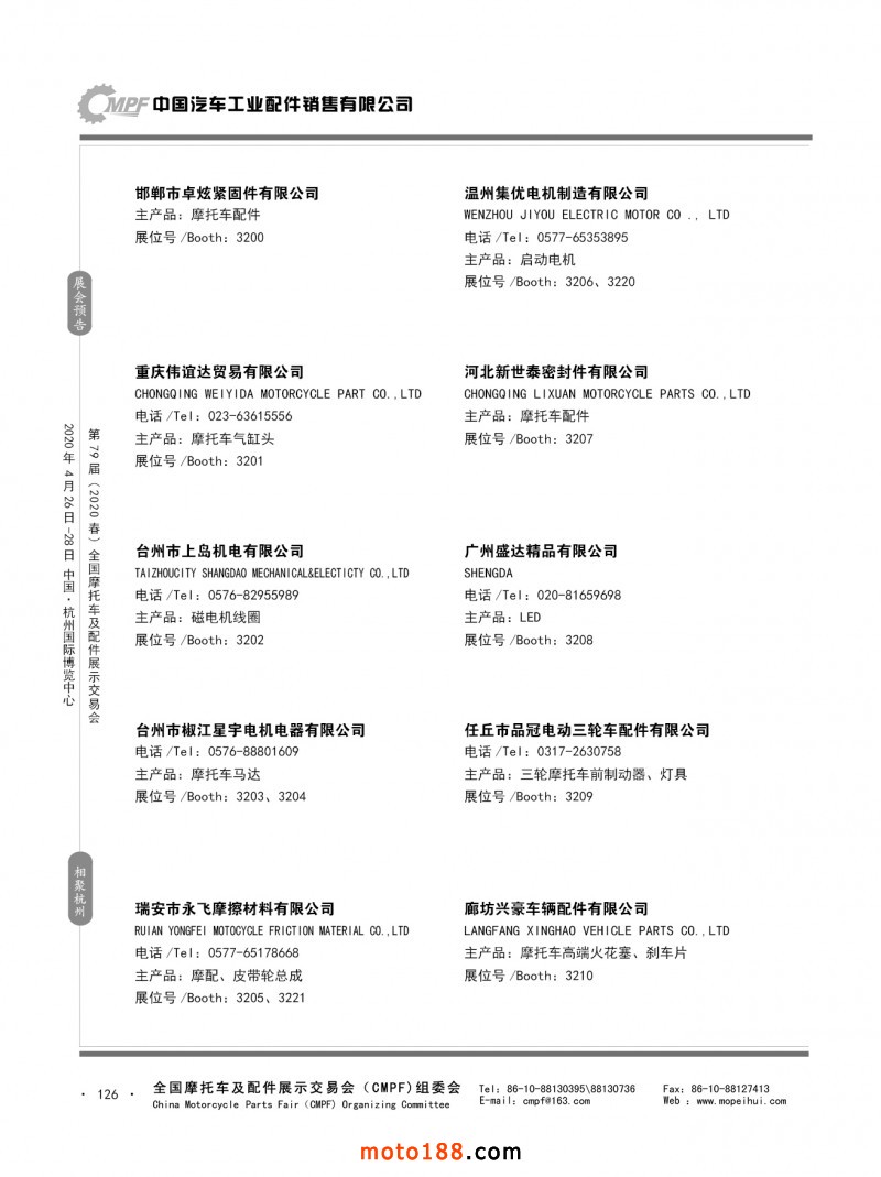 內79-172 第78屆(2019秋)全國摩托車及配件展示交易會-廣州站參展企業信息