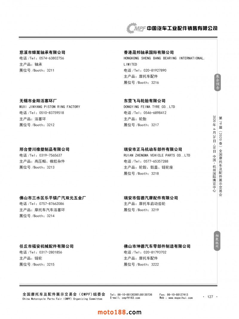 內(nèi)79-172 第78屆(2019秋)全國(guó)摩托車及配件展示交易會(huì)-廣州站參展企業(yè)信息