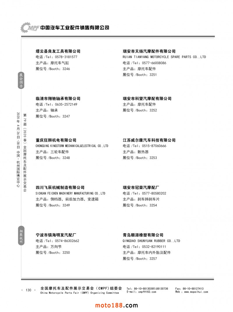 內(nèi)79-172 第78屆(2019秋)全國摩托車及配件展示交易會-廣州站參展企業(yè)信息