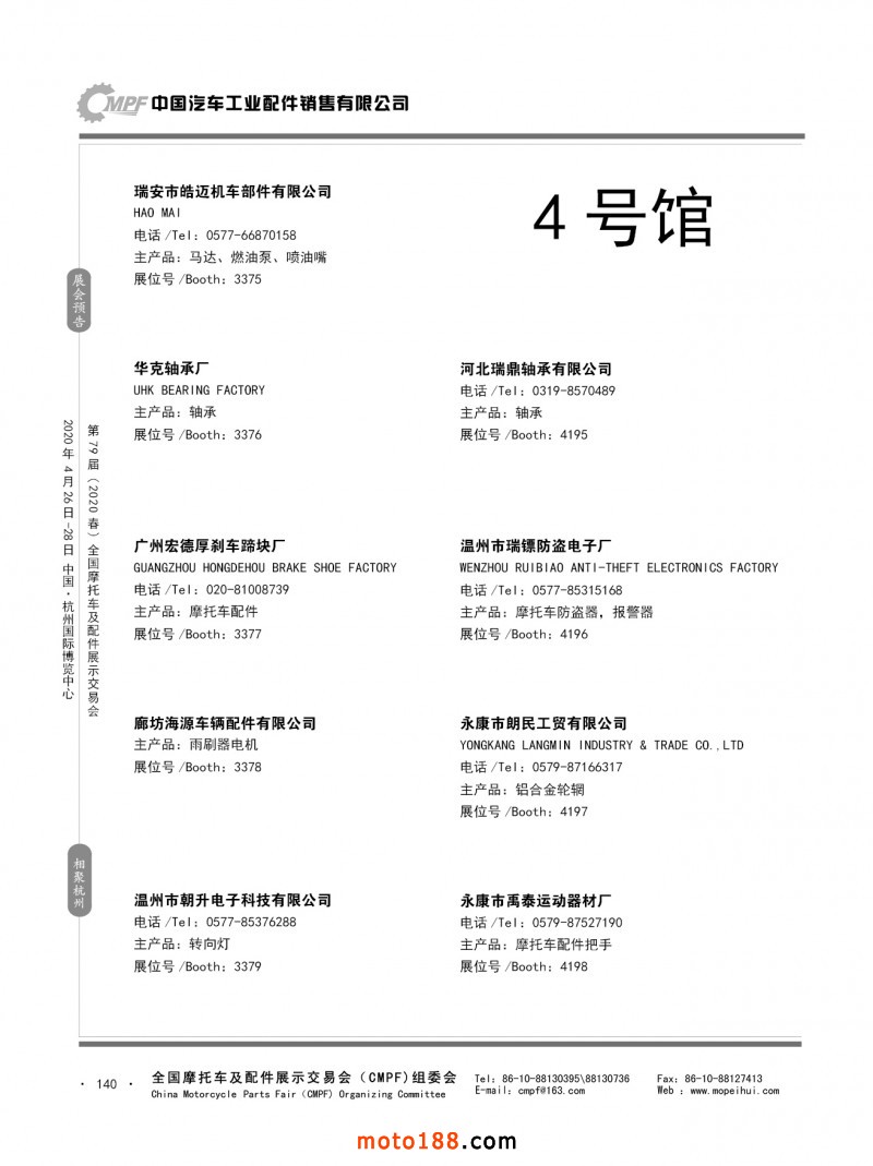 內79-172 第78屆(2019秋)全國摩托車及配件展示交易會-廣州站參展企業信息