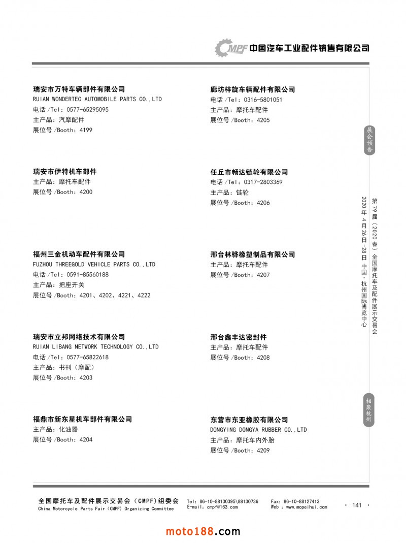 內(nèi)79-172 第78屆(2019秋)全國(guó)摩托車及配件展示交易會(huì)-廣州站參展企業(yè)信息