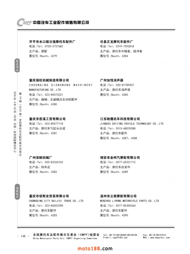 內79-172 第78屆(2019秋)全國摩托車及配件展示交易會-廣州站參展企業信息