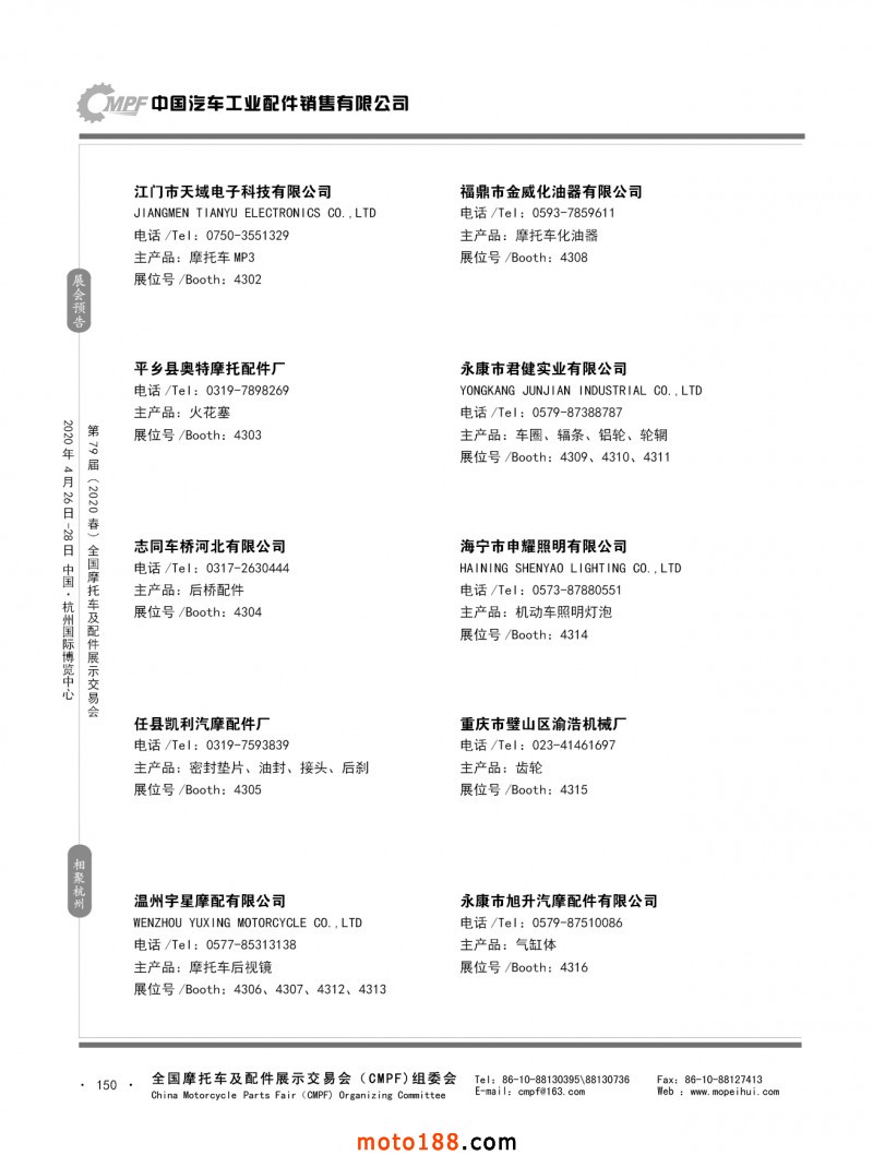 內(nèi)79-172 第78屆(2019秋)全國摩托車及配件展示交易會-廣州站參展企業(yè)信息