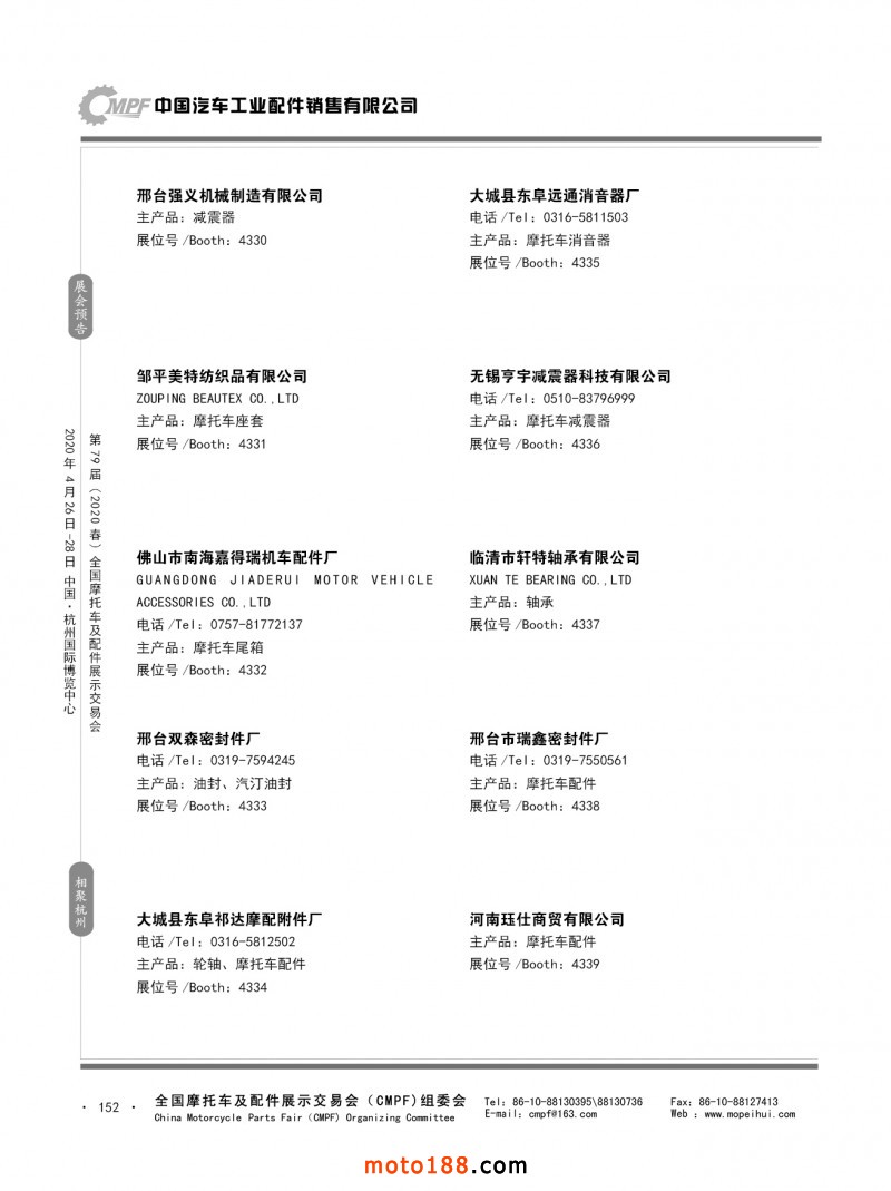 內79-172 第78屆(2019秋)全國摩托車及配件展示交易會-廣州站參展企業信息