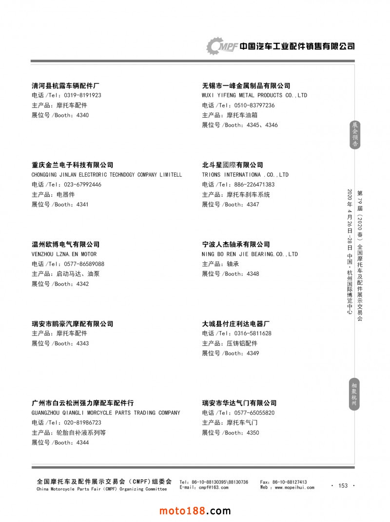 內(nèi)79-172 第78屆(2019秋)全國(guó)摩托車及配件展示交易會(huì)-廣州站參展企業(yè)信息