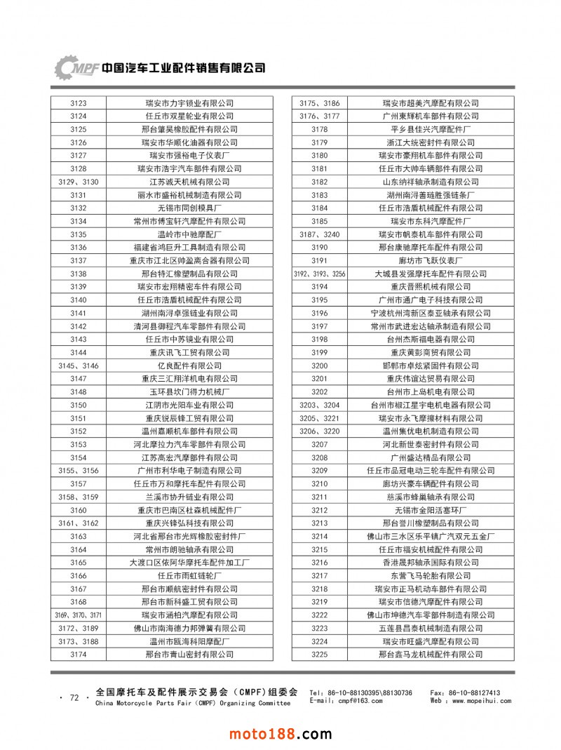 內67-78 第78屆(2019秋)全國摩托車及配件展示交易會-廣州站參展單位名錄