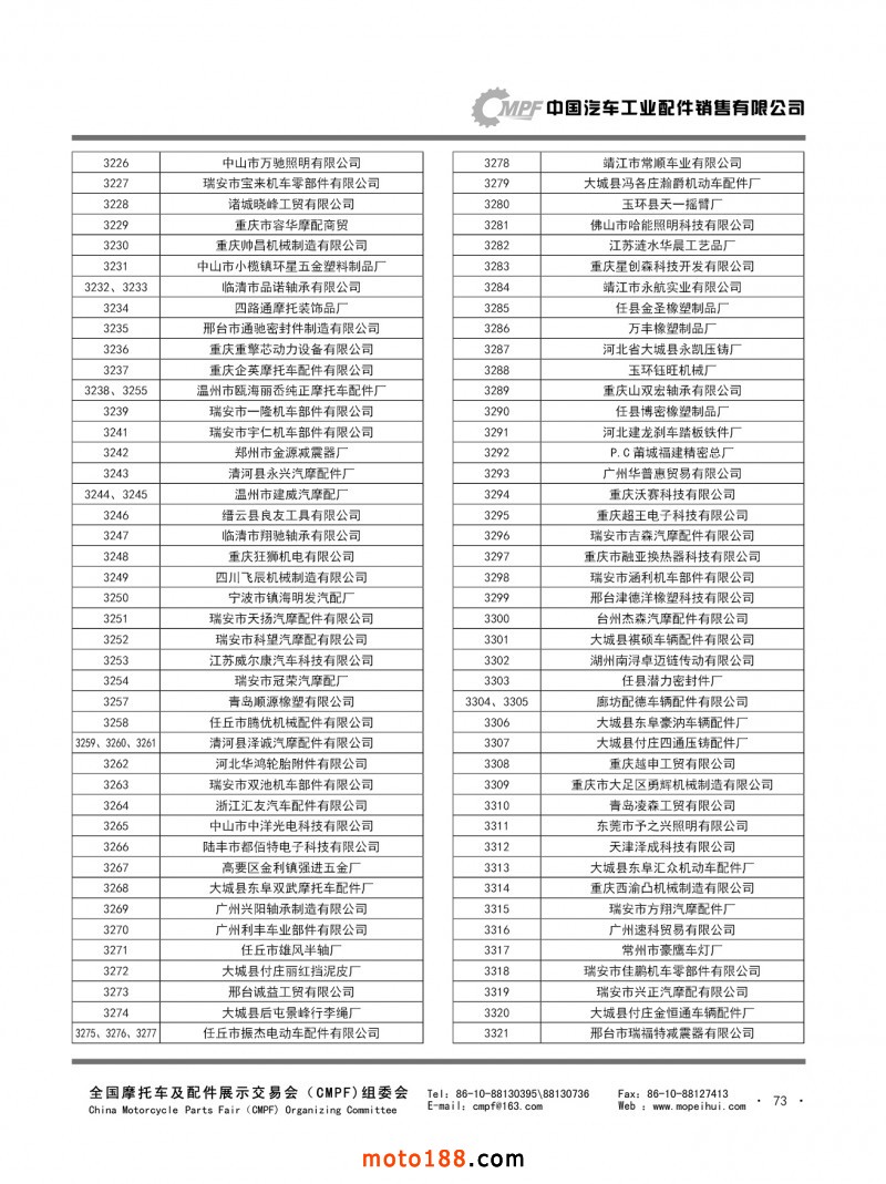 內(nèi)67-78 第78屆(2019秋)全國(guó)摩托車(chē)及配件展示交易會(huì)-廣州站參展單位名錄