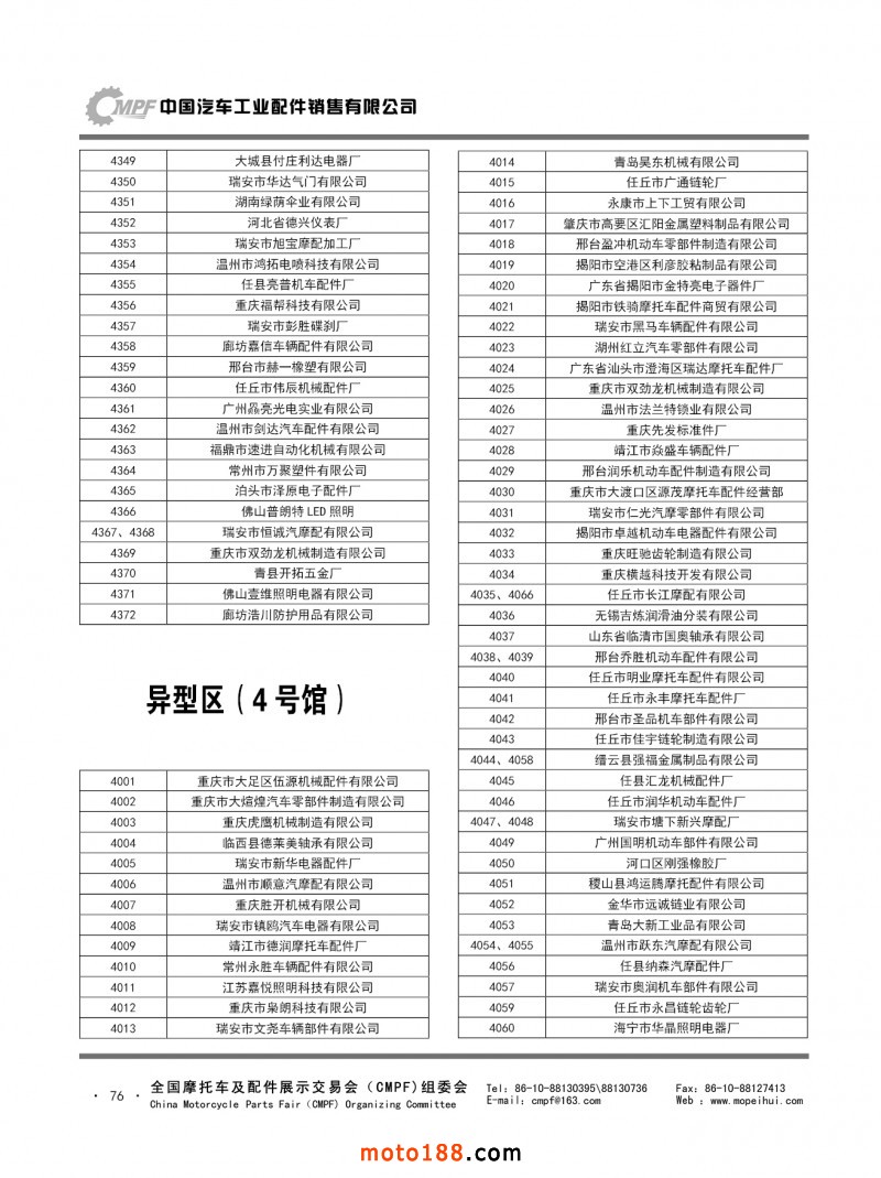 內67-78 第78屆(2019秋)全國摩托車及配件展示交易會-廣州站參展單位名錄