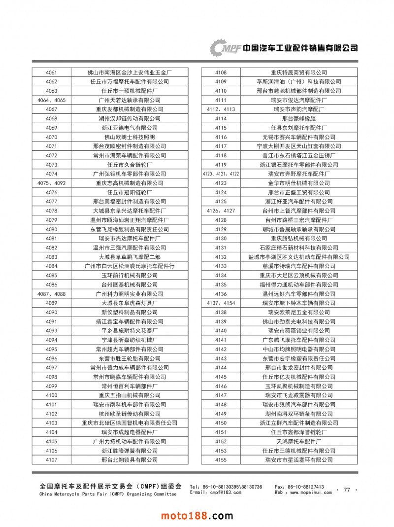 內(nèi)67-78 第78屆(2019秋)全國(guó)摩托車及配件展示交易會(huì)-廣州站參展單位名錄