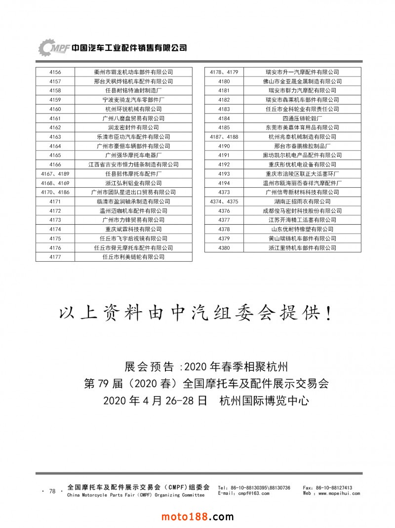 內67-78 第78屆(2019秋)全國摩托車及配件展示交易會-廣州站參展單位名錄