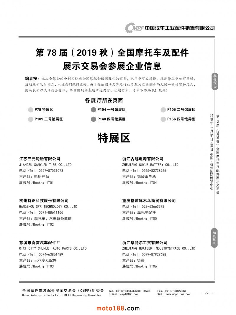 內(nèi)79-172 第78屆(2019秋)全國摩托車及配件展示交易會-廣州站參展企業(yè)信息