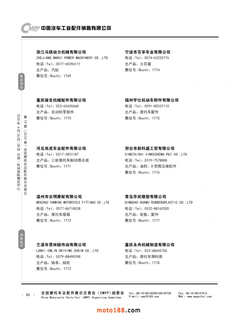 內79-172 第78屆(2019秋)全國摩托車及配件展示交易會-廣州站參展企業信息
