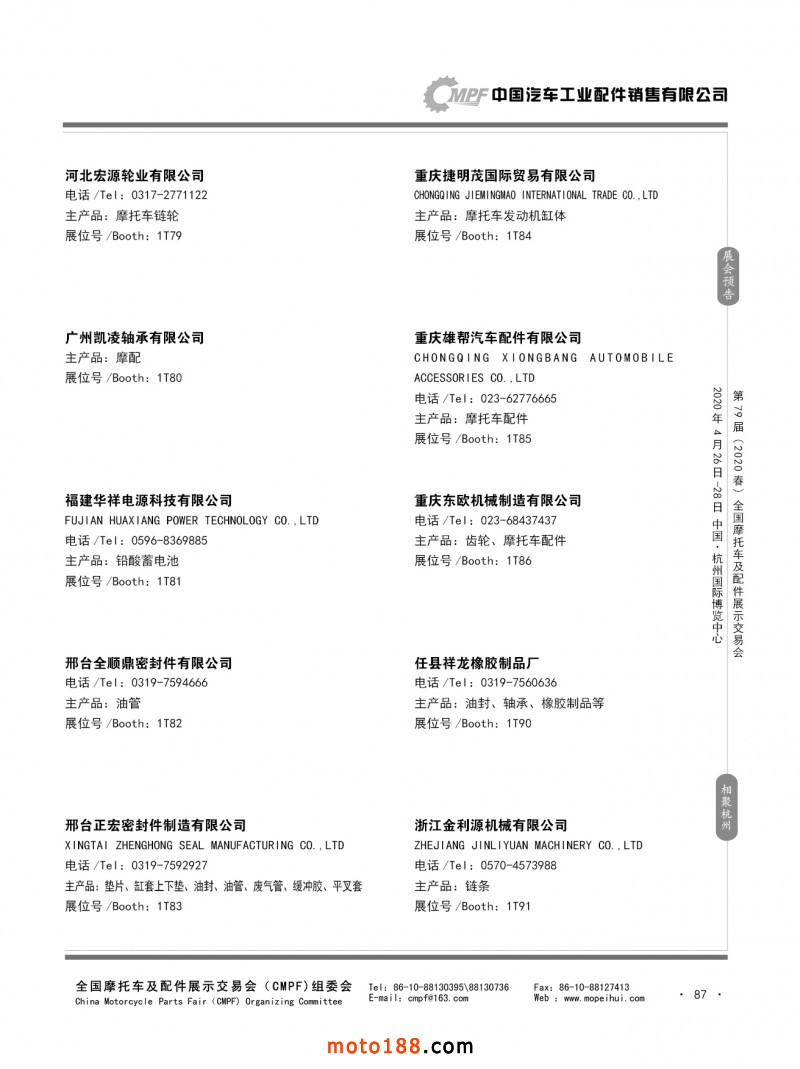 內79-172 第78屆(2019秋)全國摩托車及配件展示交易會-廣州站參展企業信息