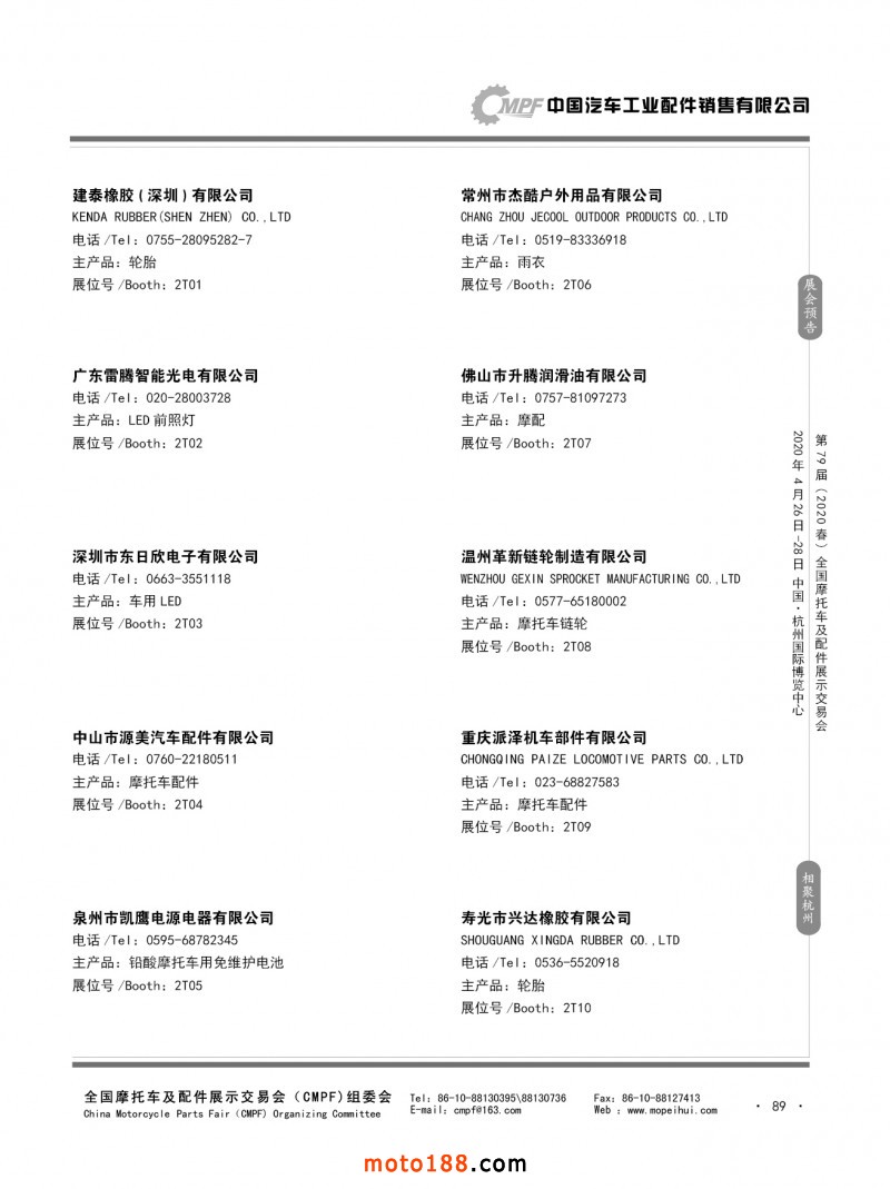 內79-172 第78屆(2019秋)全國摩托車及配件展示交易會-廣州站參展企業信息