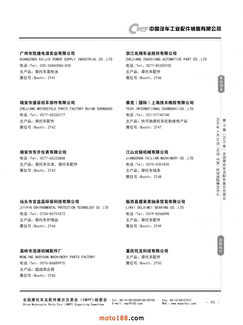 內(nèi)79-172 第78屆(2019秋)全國(guó)摩托車及配件展示交易會(huì)-廣州站參展企業(yè)信息