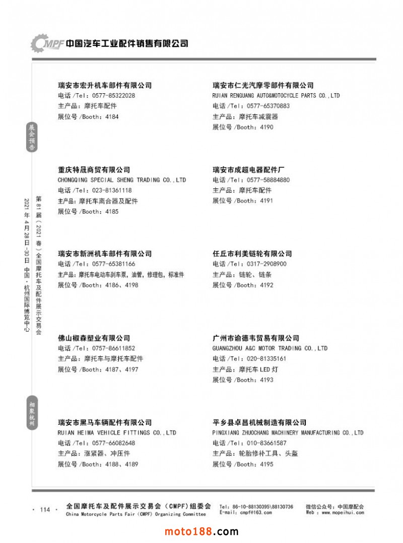 內114 第80屆(2020秋)全國摩托車及配件展示交易會-廣州站參展企業信息