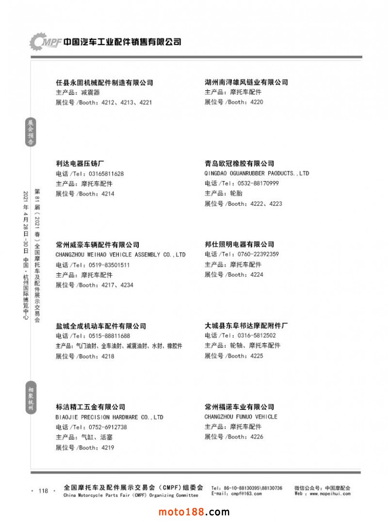 內(nèi)118 第80屆(2020秋)全國摩托車及配件展示交易會(huì)-廣州站參展企業(yè)信息