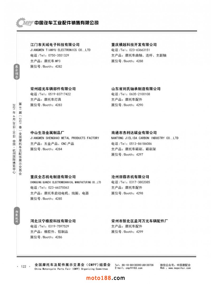 內(nèi)122 第80屆(2020秋)全國摩托車及配件展示交易會-廣州站參展企業(yè)信息