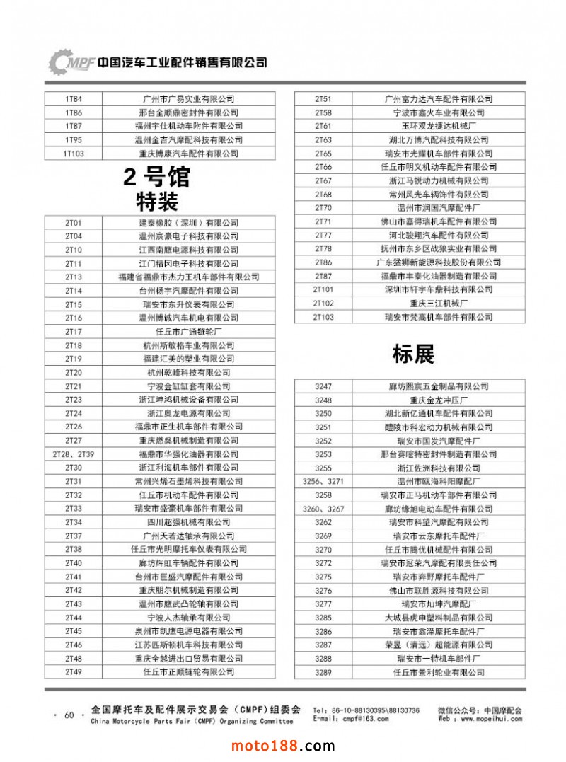 內(nèi)60 第80屆(2020秋)全國摩托車及配件展示交易會-廣州站參展單位名錄