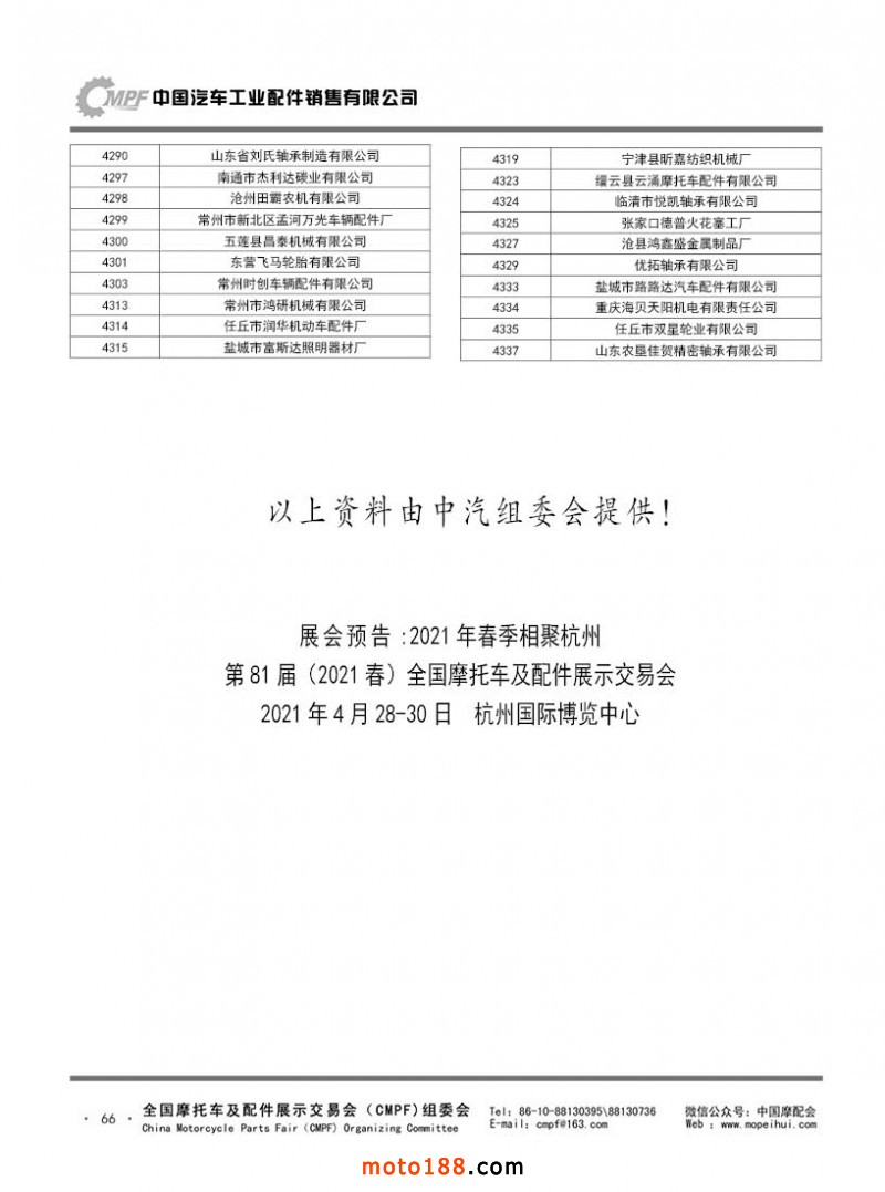 內66 第80屆(2020秋)全國摩托車及配件展示交易會-廣州站參展單位名錄