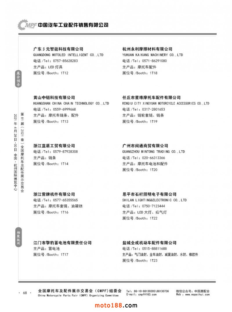 內(nèi)68 第80屆(2020秋)全國摩托車及配件展示交易會-廣州站參展企業(yè)信息