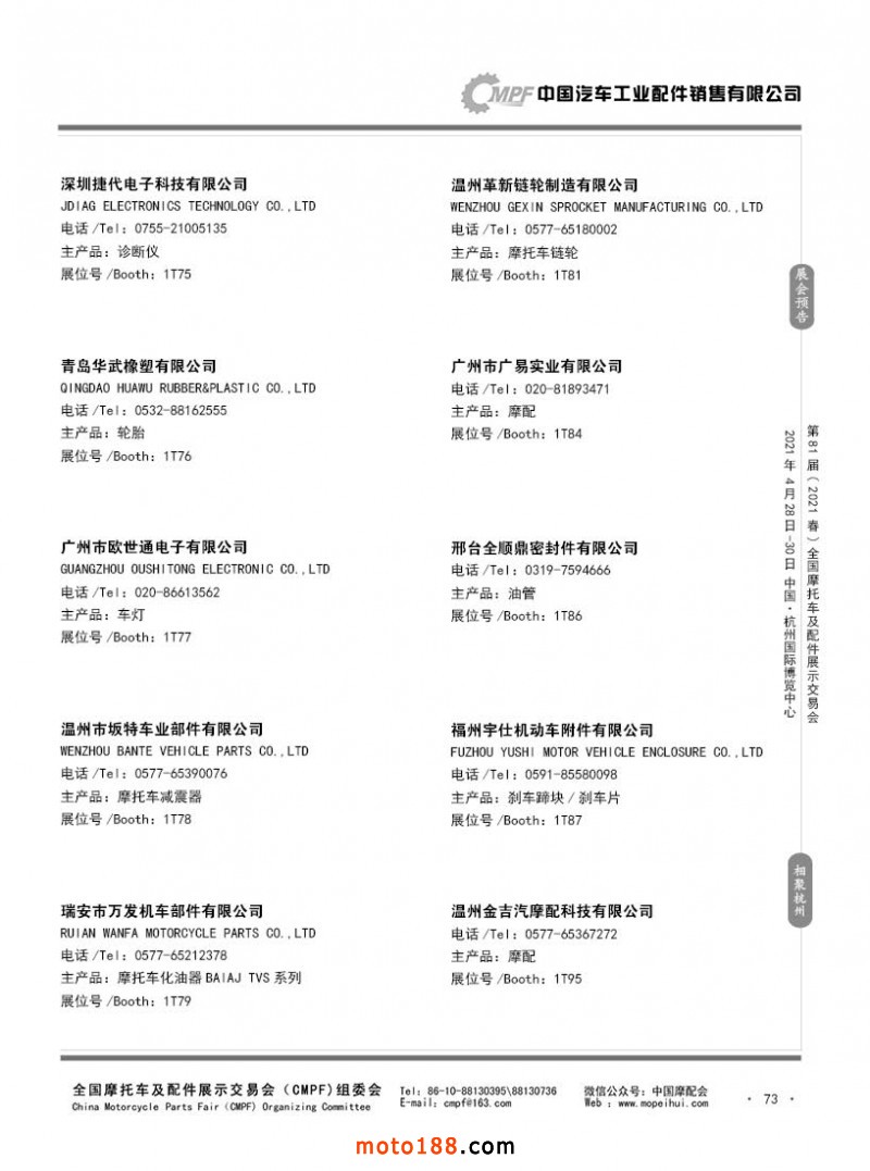 內73 第80屆(2020秋)全國摩托車及配件展示交易會-廣州站參展企業信息