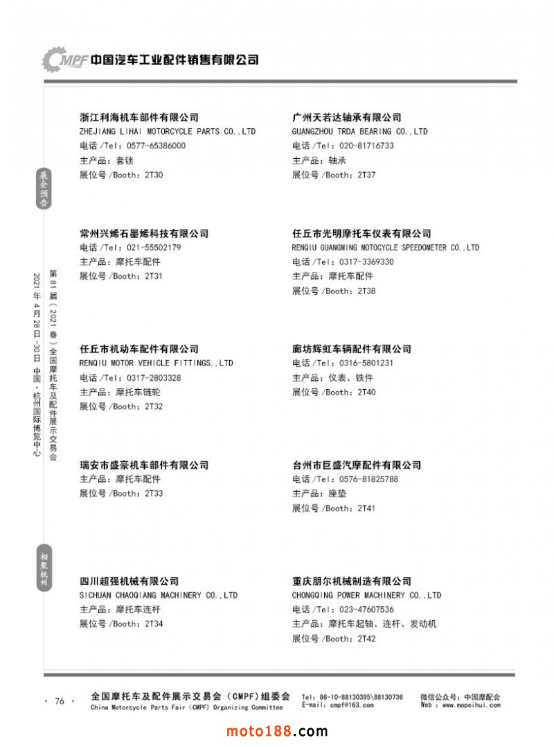 內(nèi)76 第80屆(2020秋)全國摩托車及配件展示交易會(huì)-廣州站參展企業(yè)信息