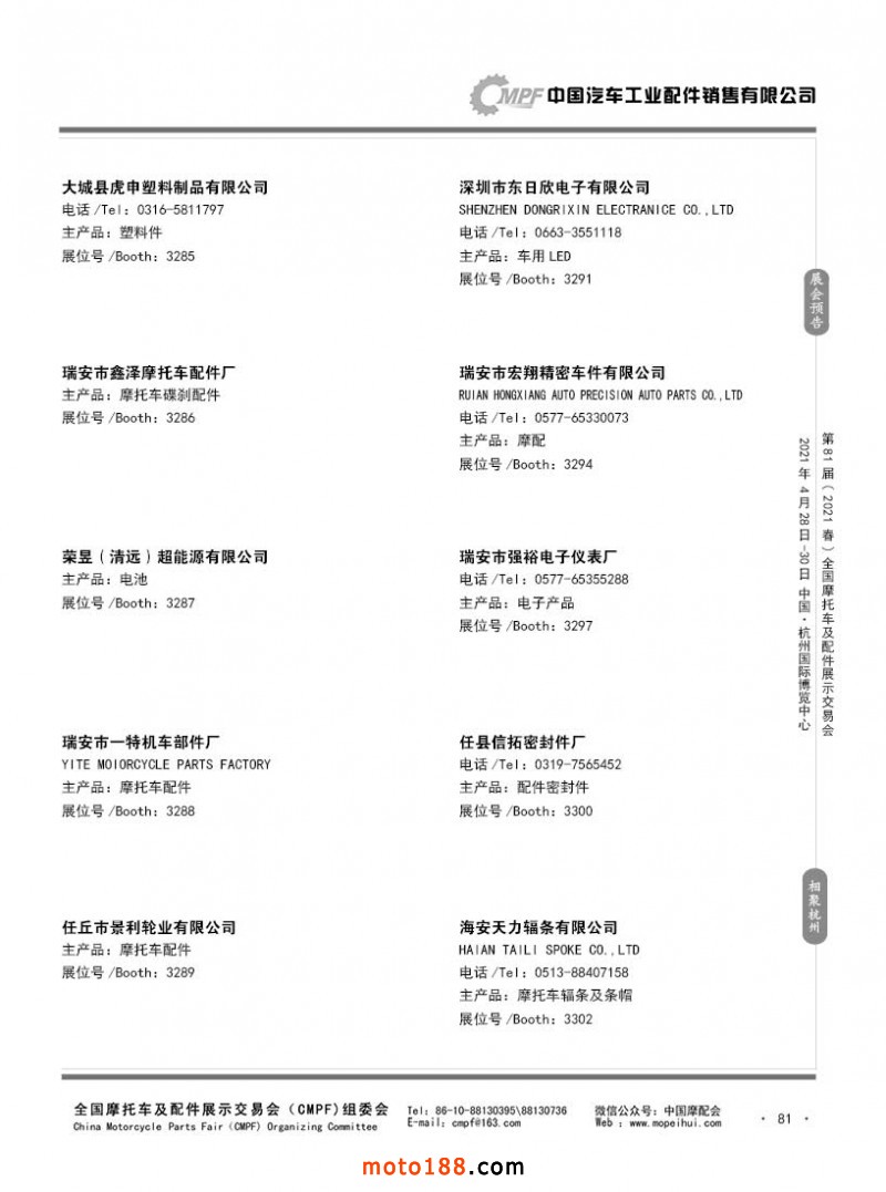 內(nèi)81 第80屆(2020秋)全國摩托車及配件展示交易會(huì)-廣州站參展企業(yè)信息